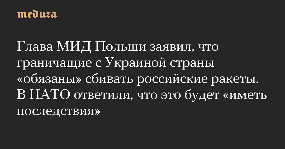 Глава польского МИД Радослав Сикорский заявил, что Польша и другие страны, граничащие с Украиной, имеют «обязанность» сбивать приближающиеся российские ракеты до того, как они войдут в их воздушное пространство. В НАТО предупредили, что это будет иметь последствия для всего альянса.