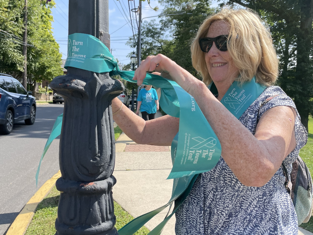 Volunteers are asked to gather on Saturday, Sept. 28 at 9 a.m. at the Starbucks porch at Main and State Streets. From there, they will disperse throughout the town center with the goal of removing all the teal ribbons.